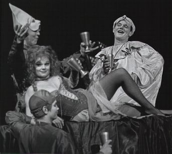 | Szene mit Eva-Christine Reimer (Mitte), Karsten Ruß (links), Jörg Sabrowski (oben), Bernd Gebhardt (rechts) und Ulrich Köberle (unten) |